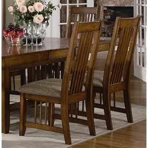 Promotion Set of 2 Dining Chairs Mission Style Warm Medium Oak Finish